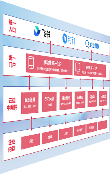 对协作平台提供支持服务,,支持企业应用与协作平台对接,,,,包含组织同步、、、消息集成、、、待办集成等。。。。支持目前主流的协作平台:钉钉、、企微和飞书。。。